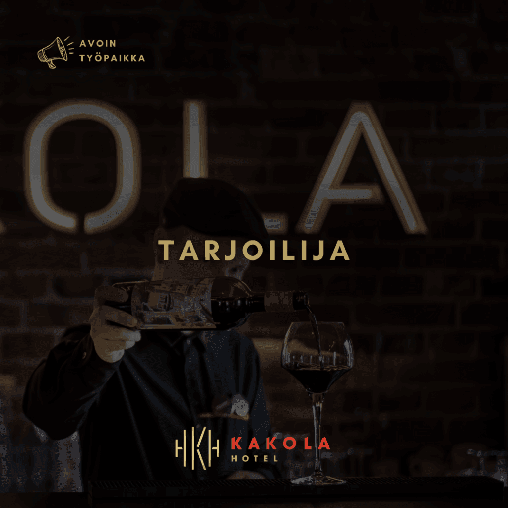 Etsimme ammattitaitoista tarjoilijaa, jolla on aiempaa kokemusta ravintola-alalta. Arvostamme erityisesti kokemusta à la carte -tarjoilusta, mutta tärkeintä on aito halu tarjota asiakkaille ensiluokkainen ravintolakokemus.